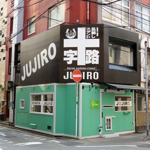 最近オープンしたばかりの「馬刺しスタンド十字路」に行ってきました。